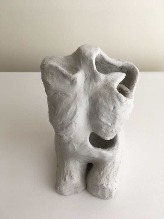 The hollowness of this little sculpture reflects the instability of my torso, ribs and spine. But also that hollow feeling in my chest, that is so often marked as a sort of false beginning in my illness narrative, a bad omen for what was to come. A feeling I now get whenever I am run down and has come back to me now during this time of uncertainty.